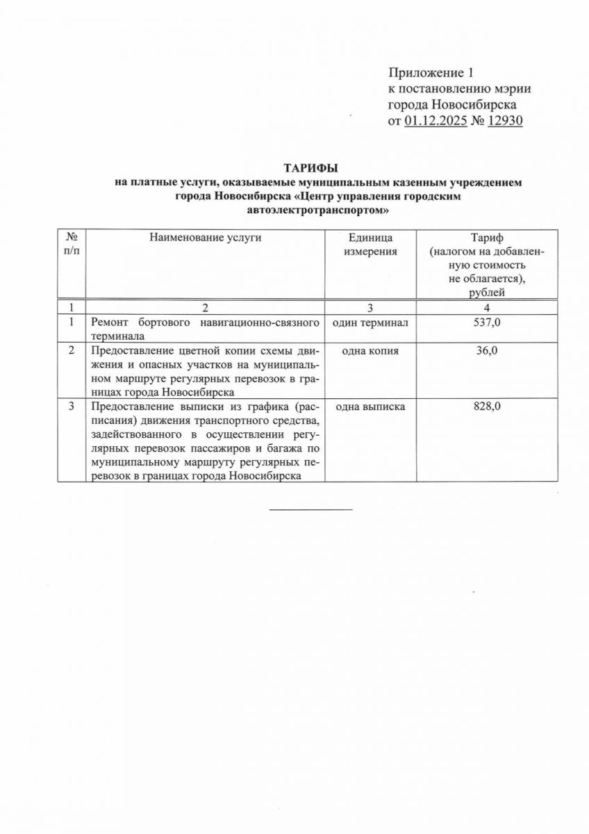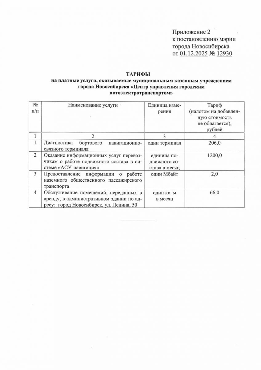 Тарифы на платные услуги